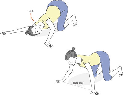 痛みが軽減されたら、猫背矯正(上半身のストレッチ)を行います。