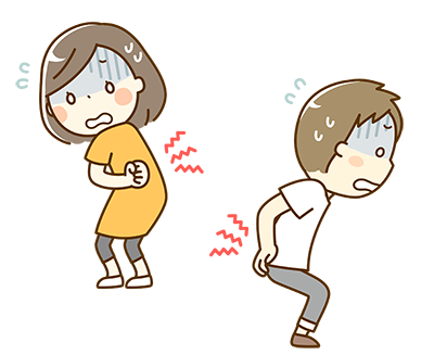長時間中腰や猫背などの姿勢を続け、腰や背中の筋肉が緊張し続けたときや、運動不足で腰を支える筋力が弱っているときなどに起こります。