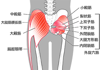 表層の大殿筋ではなく、触れにくい深い筋・関節・神経が関与しているケースが多いのが特徴です。