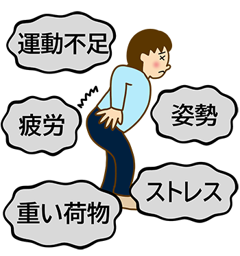 - 体の使い方の不適切さ 日常生活での体の使い方が悪いと、腰に負担がかかりやすくなります。